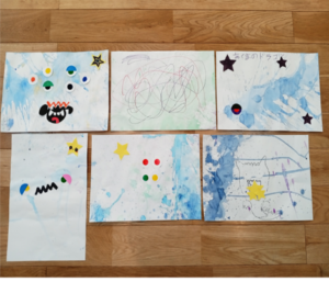 それを床においた紙に叩きつけてアートを完成させました✨👀